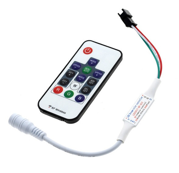 Светодиодный контроллер для смарт диодов DIY, с дистанционным радиочастотным управленем, DC5-24V, 358 встроенных автоматических режимов работы.