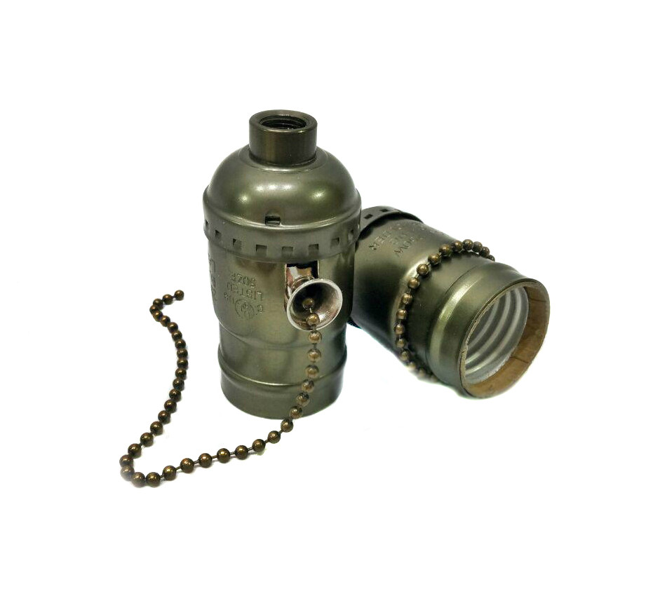 Ретро патрон UkrLed бронзовый для лампы Эдисона Е27 (c выключателем-цепочкой) (725)