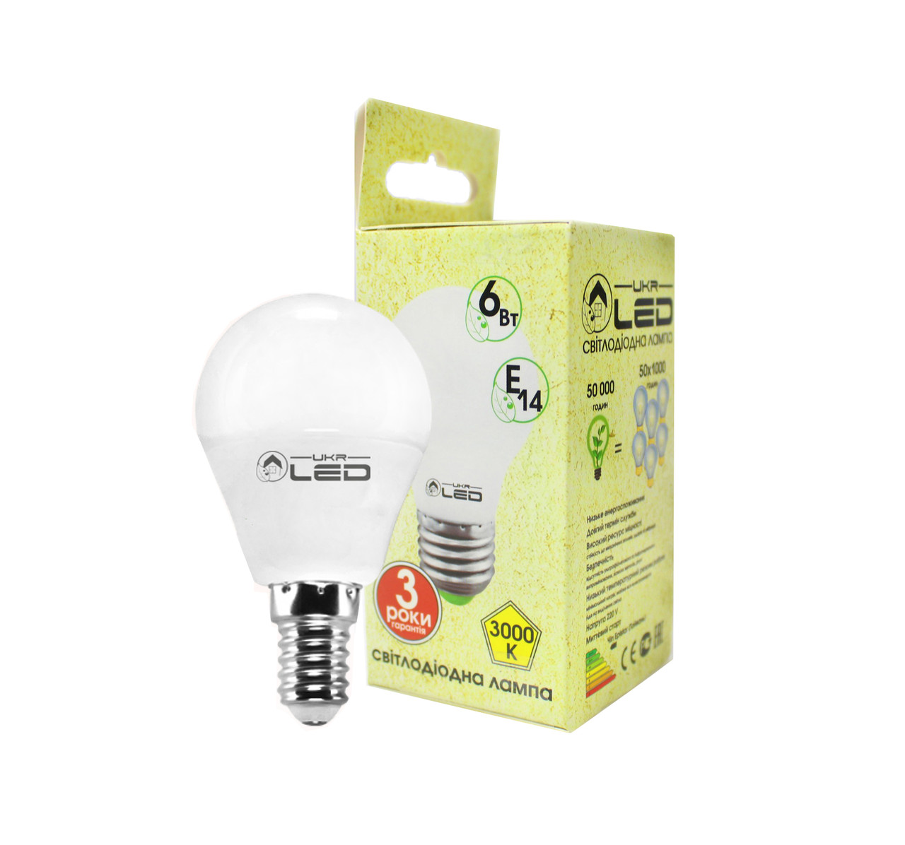 Светодиодная лампочка UKRLED — новинка на рынке LED продукции, которая отличается наивысшим качеством свечения, за надежностью и своей оригинальностью. Мощность лампочки составляет 6 Вт, форма — груша, тип цоколя — Е14, 3000К. Особенностью представленного товара является укороченная высота «юбки», за счет чего увеличивается угол свечения лампы. Стоит отметить также, что корпус изготовлен из ударопрочного пластика и диоды равномерно расположены на алюминиевой матрице. Благодаря этому продлевается их срок службы и лампочки в целом.