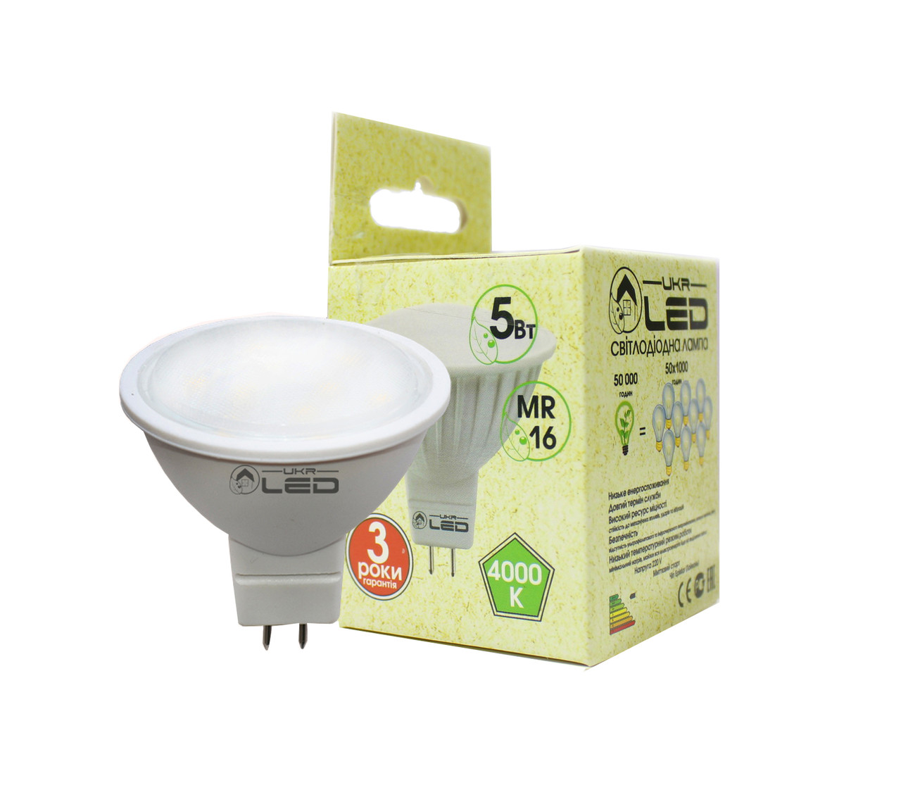 Светодиодная лампочка UKRLED — новинка на рынке LED продукции, которая отличается наивысшим качеством свечения, за надежностью и своей оригинальностью. Мощность лампочки составляет 5Вт, тип цоколя — G5.3, 4000К. Особенностью представленного товара является укороченная высота «юбки», за счет чего увеличивается угол свечения лампы. Стоит отметить также, что корпус изготовлен из ударопрочного пластика и диоды равномерно расположены на алюминиевой матрице. Благодаря этому продлевается их срок службы и лампочки в целом.